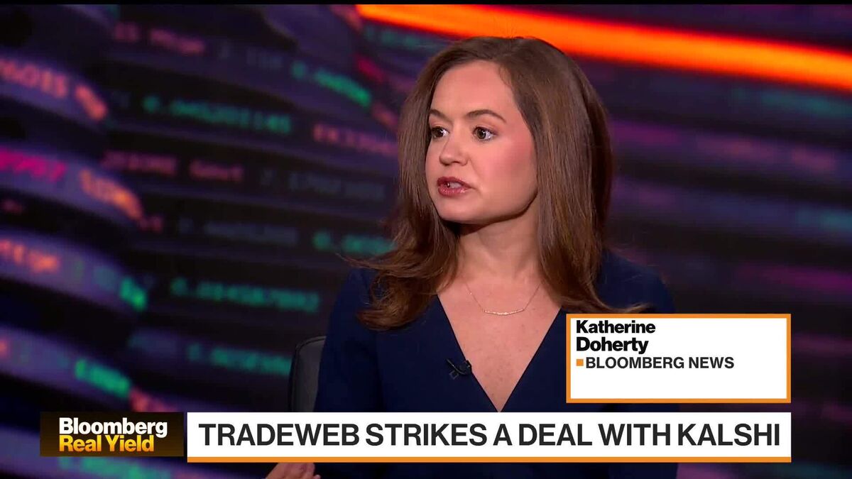 Tradeweb Markets Inc. signed a deal to bring Kalshi Inc.'s prediction markets to more institutional investors, and will start showing real-time prices for Kalshi's event-based contracts. Katherine Doherty has been reporting on this story for Bloomberg News and spoke with Scarlet Fu on "Bloomberg Real Yield." (Source: Bloomberg)