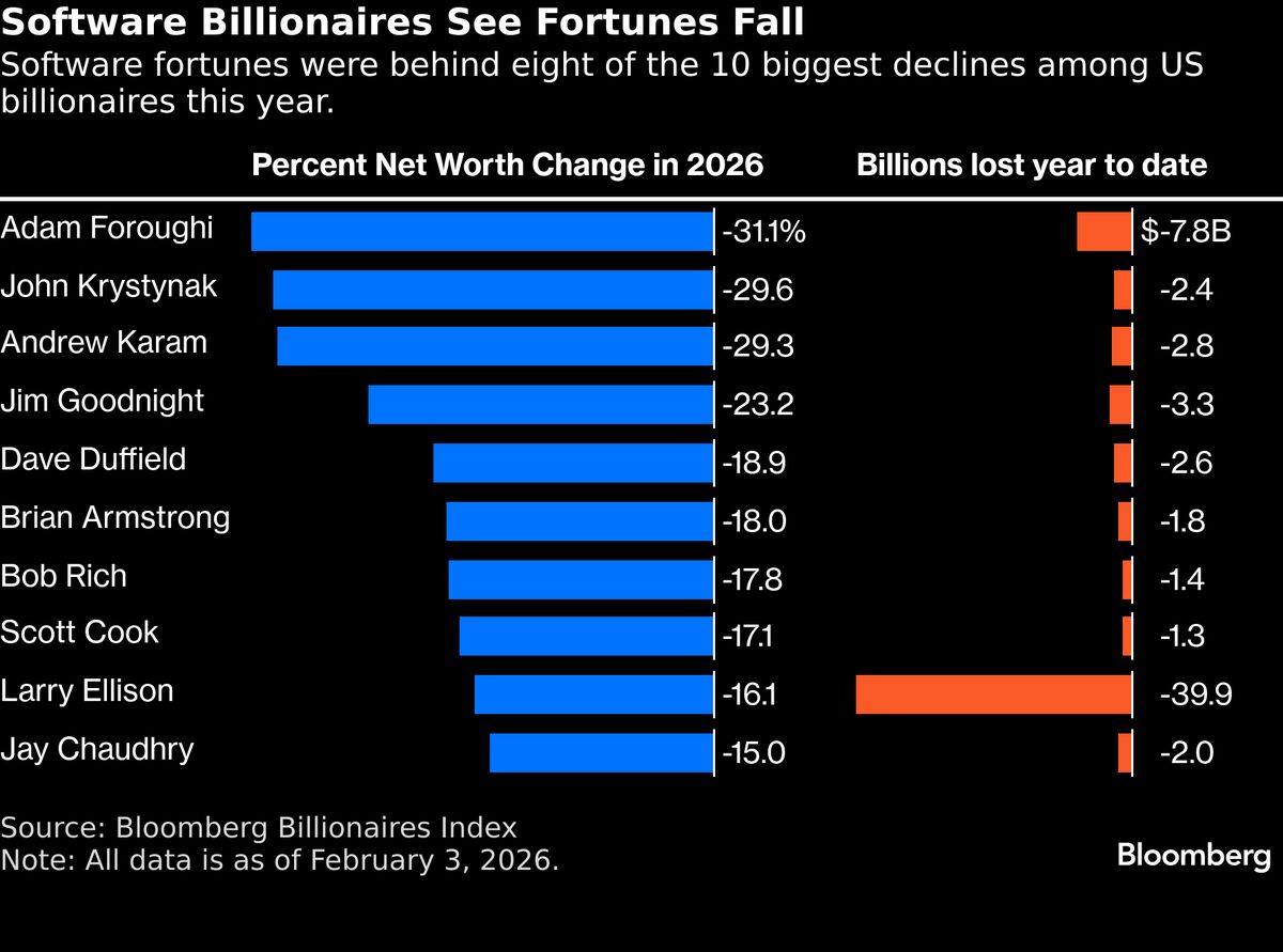 - Software Billionaires Drop $62 Billion in AI-Driven Stock Slumpby Biz Carson, Jack Witzig on February 4, 2026 at 4:02 pm