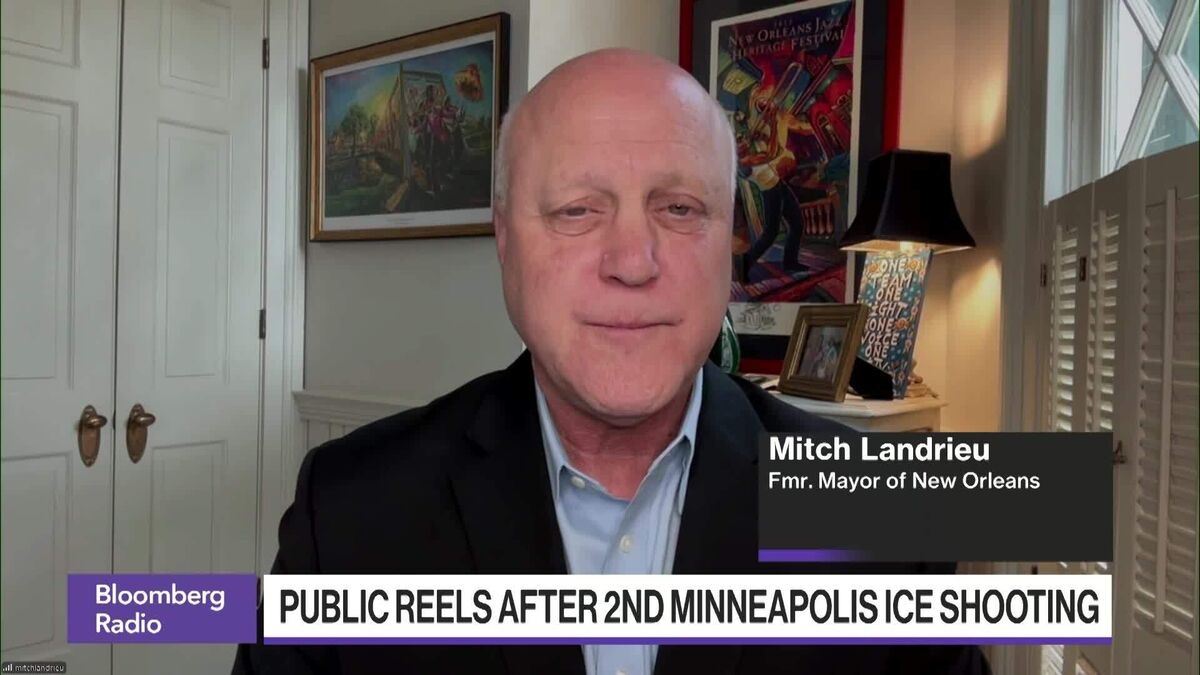 Former New Orleans Mayor Mitch Landrieu said the actions by federal immigration agents demonstrate they don't have proper training for the mission and the majority of Americans views them as "out of control." Landrieu said that "systems of accountability" are important for ensuring trust in law enforcement as Democrats push for ICE agents to "unmask." (Source: Bloomberg)